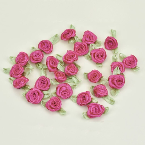 Apró szaténrózsa fejek kisebb dekorációk kiegészítésére. Ragaszthatjuk például kisebb, festett dobozokra, felvarrhatjuk kisebb lenvászon szütyőkre.