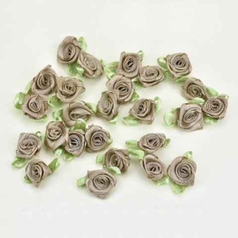 Szatén rózsafejek 2cm 5db/cs. világosbarna