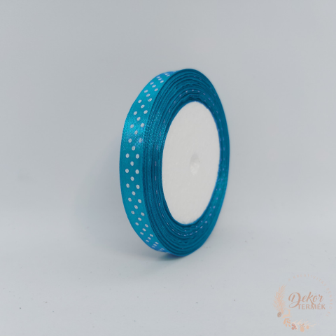 1 kép Szatén szalag 1 cm pöttyös türkiz