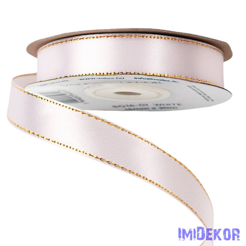 Szatén szalag arany szegéllyel 16mm x 20m - Fehér szalag, masni árgrafikon