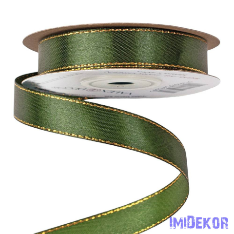 1 kép Szatén szalag arany szegéllyel 16mm x 20m - Sötétzöld