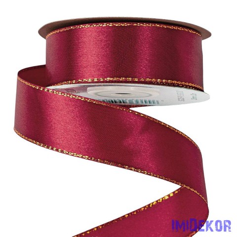 Szatén szalag arany szegéllyel 25mm x 20m - Bordó
