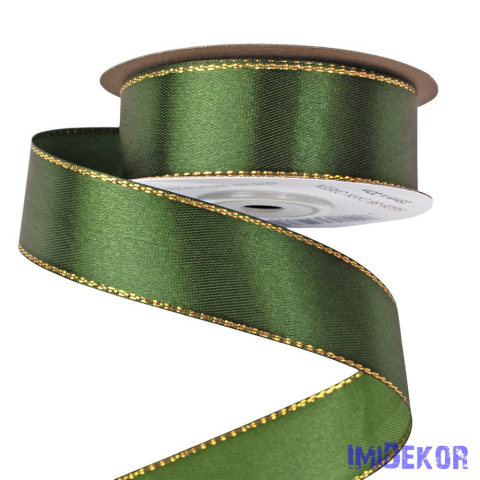 1 kép Szatén szalag arany szegéllyel 25mm x 20m - Sötétzöld