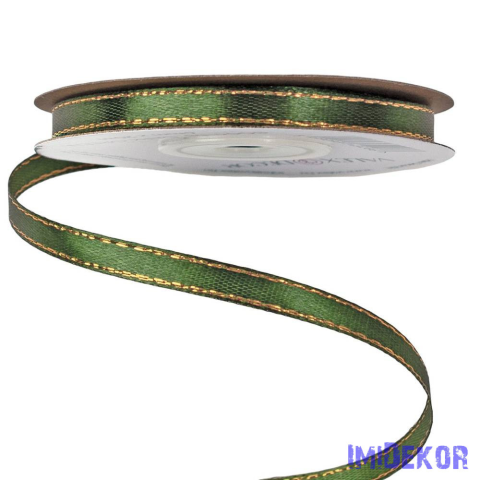 1 kép Szatén szalag arany szegéllyel 6mm x 20m - Sötétzöld