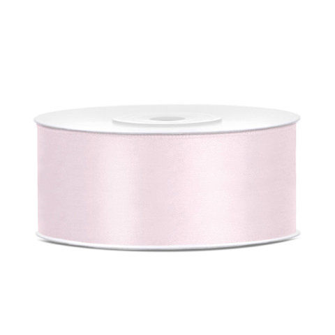 Szaténszalag, világos púder rózsaszín, szélessége 25 mm, hossza 25 méter. (1 db. / 25 lm)