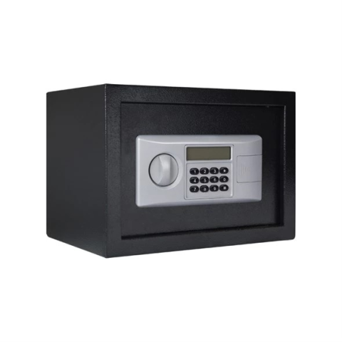 Ezzel a széffel értékei teljes biztonságban lesznek. Falra vagy padlóra is rögzíthető. A PIN-kóddal ellátott elektronikus zár egyszerű kezelést tesz lehetővé. Ha lemerült az elem, a széf a mellékelt kulccsal nyitható.