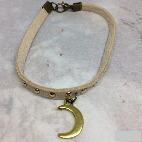 1 kép Szegecses, bézs színű bőrkarkötő félhold medállal