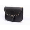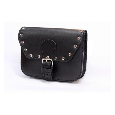 Valódi bőr övtáska, szegecsekkel díszítve. Hátulján 2 db bőr bújtató az övhöz való felfogatáshoz. Kézzel készült, magyar bőrdíszműves termék. Külső mérete: 16,5 x 12 x 3 cm.