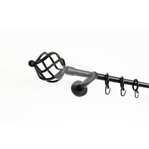 A SZEGED fekete 1 rudas, 120 cm-es, modern tartós fém karnis szett tartalma: 1 db fekete színű, 120 cm hosszú, 16 mm átmérőjű fém karnisrúd 2 db Szeged típusú fekete fém végzáró 2 db falra szerelhető modern fém konzol 12 db fekete műanyag karika fekete s