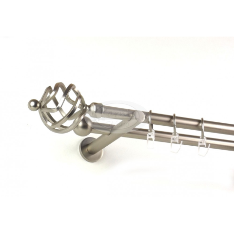 A SZEGED 120 cm-es nikkel-matt színű 2 rudas fém karnis szett tartalma: 2 db 120 cm-es nikkel-matt színű 16 mm átmérőjű fém karnisrúd 2 db Szeged típusú nikkel-matt színű fém karnis végzáró 2 db Veszprém típusú, kis gömb formájú fém karnis végzáró 2 db f