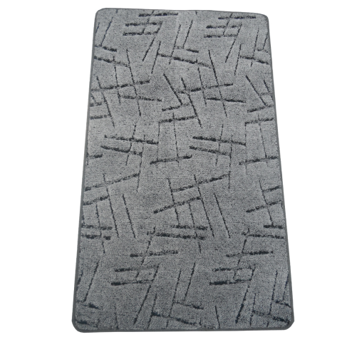 100x300 cm-es nyomott mintás szegett szőnyeg, szürke színben, vonal mintával, filc hátoldallal.