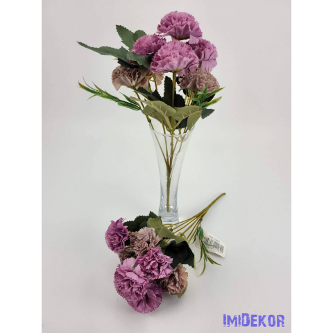Szegfű 7 ágú selyemvirág csokor - Lilás mix dekoráció 1 kép