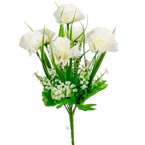 Szegfű csokor 7v. fehér M31cm 36db/# dekorációs kellék árgrafikon