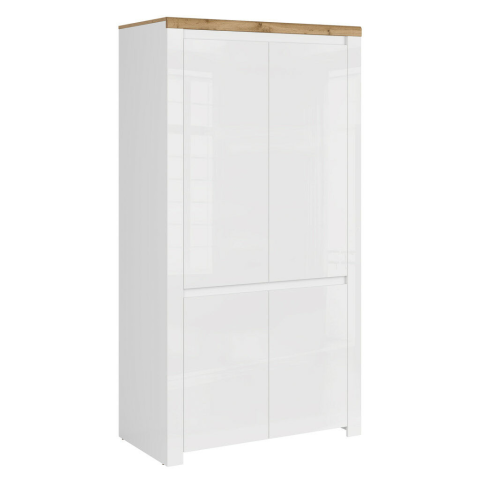 Szekrény 4D, fényes fehér/wotan tölgy, VILGO bútor termékleírás