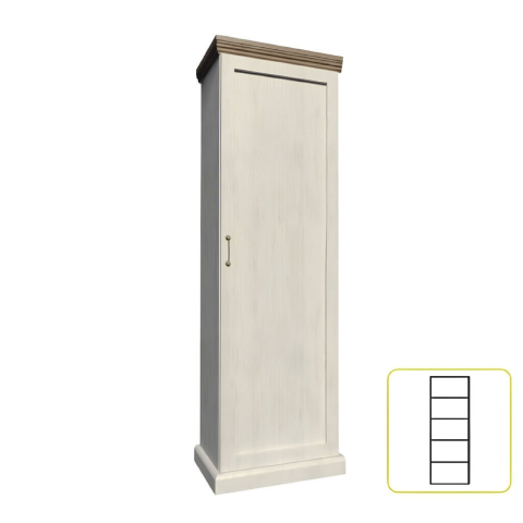 ROYAL S1D Szekrény - Elegáns tárolás provence-i stílusban 🏡 A ROYAL S1D szekrény az elegáns provence-i stílus megtestesítője, tökéletes választás nappaliba vagy hálószobába. Egyajtós kialakításának és polcos belső terének köszönhetően praktikus tárol...