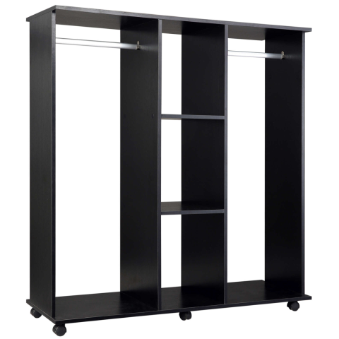 Teljes szekrény kerekekkel, 2 függesztő rúddal, forgácslapgal, 120x40x128cm, fekete termékleírás