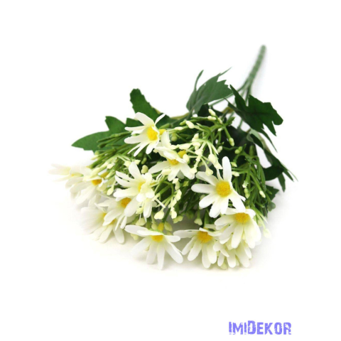 Szeldelt virágú margaréta csokor bogyóval 33cm - Fehér dekorációs kellék árgrafikon