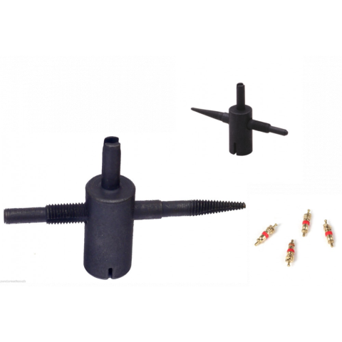 Ezzel a szerszámmal eltávolíthatja/beszerelheti a gumiabroncsok szeleptokját. Alkalmas a sérült szeleptokok eltávolítására, a szelepek ki és betekerésére, a szelep külső és belső menetének javítására. 37x58mm