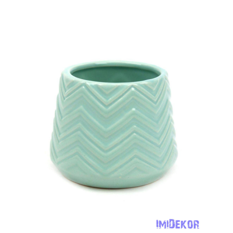 Széles aljú cikkcakk mintás kaspó 7cm - Zöld