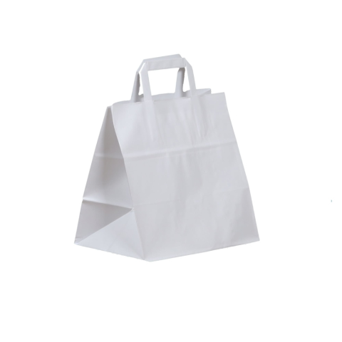 A széles talpú elviteles papírtáska 26x25+17 cm-es méretben készül fehér színben. A nevéből adódóan főleg az elvitelre szánt termékekhez készült, úgyhogy leginkább éttermeknek, büféknek vagy élelmiszerrel foglalkozó üzleteknek ajánljuk, de akár az ajándékboltok is kihasználhatják az előnyét. A papírtáska már darabonként is megrendelhető, azonban érdemes kihasználni a mennyiségi kedvezményt, ami még olcsóbbá teszi. A 26x25+17 cm-es fehér, széles tal