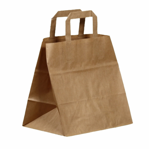 Az eldobható műanyag táska helyett egy praktikusabb, és környezetkímélőbb megoldás ha széles talpú elviteles papírtáskát használunk, mely natúr barna színben, 26×25+17 cm-es méretben is megvásárolható. A papírtáskák manapság egyre elterjedtebbek, lassan a környezetbarát megoldások lekörözik az egyszer használatos műanyag táskákat, hiszen jól pakolhatóak, strapabíróak, és erősek, több méretben is megvásárolhatóak, és szükség esetén lehetőségünk