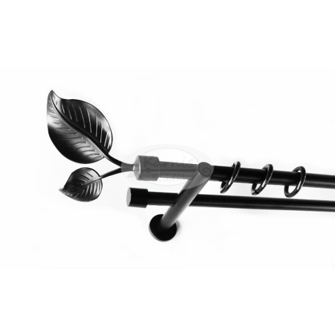 1 kép Szellő fekete 2 rudas fém karnis szett - modern tartóval - 300 cm