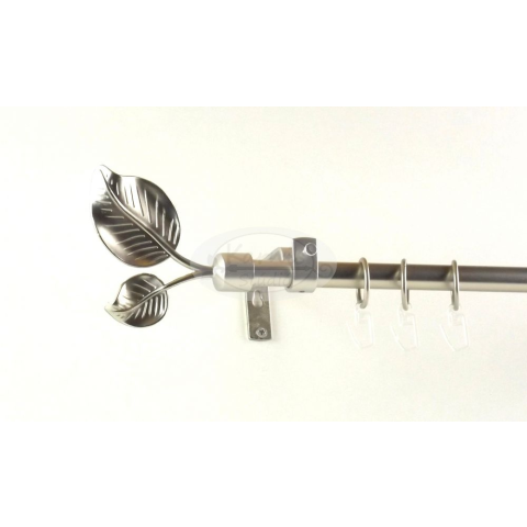 A SZELLŐ nikkel-matt színű 240 cm-es 1 rudas fém karnis szett tartalma: 1 db 240 cm-es nikkel-matt színű, 16 mm átmérőjű fém karnisrúd 2 db Szellő típusú nikkel-matt színű végzáró 3 db falra szerelhető fém konzol a felszereléshez szükséges tiplik és csa