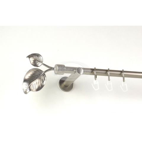 A SZELLŐ 120 cm-es nikkel-matt színű 1 rudas, modern tartós fém karnis szett tartalma: 1 db 120 cm-es nikkel-matt színű 16 mm átmérőjű fém karnisrúd 2 db Szellő típusú nikkel-matt színű végzáró 2 db falra szerelhető modern fém konzol 12 db fém karika műa