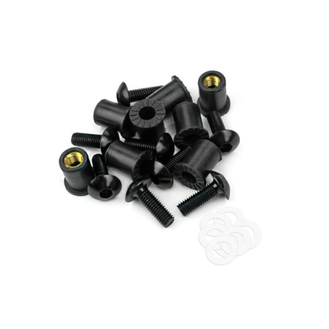 Szélvédő Csavar Készlet, Fekete, 8 dbA készlet 8 csavart és 8 dübelt tartalmaz a szélvédő biztonságos rögzítéséhez.szín: fekete8 csavar dübellelMotoros, robogós és moped alkatrészek csavarjaiA burkolatcsavarok rögzítik a motorok, robogók vagy mopedelek mű