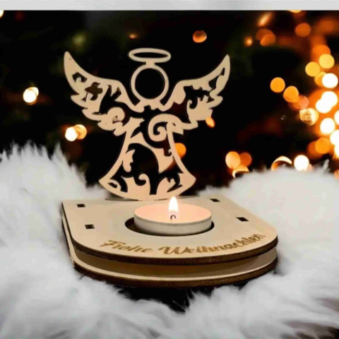 1 kép Személyre szabott fa angyal gyertyatartó, lézerrel vágott design megszemélyesítve