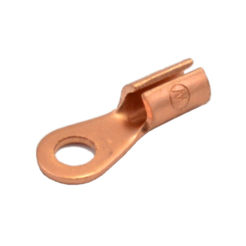 Vörösréz szemes saru, vezeték rögzítése préseléssel / forrasztással ajánlott. Alkalmazható vezeték keresztmetszet: max 2,5 mm2 - ig Furat átmérő: 4 mm Saru anyaga: vörösréz