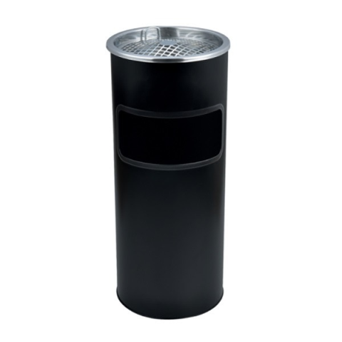 2 kép - Szemetes hamutartóval kültéri fém fekete 25x58cm