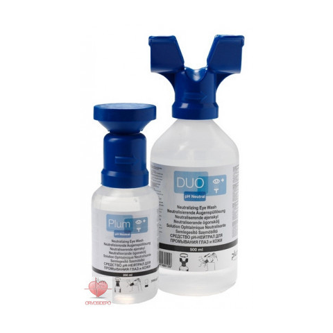 Steril, 4,9%-os foszfátoldat a szembe került vegyi anyagok semlegesítésére. Savas és lúgos vegyszerek szembe jutásakor helyreállítja a szem megfelelő pH értékét. A porvédős szemmosófej csészéjén található nyílások megakadályozzák a továbbfertőződést. A p