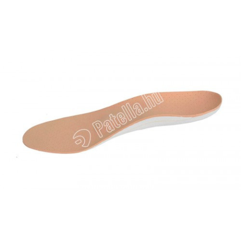 Szendvics szerkezetű betét merev. Rugalmas, perforált borítású lúdtalpbetét haránt- és hosszboltozattal, valamint öblösített sarokkiképzéssel. A rugalmas járófelület magas komfortérzetet biztosít és perforált kiképzése szellőzteti a lábat. A haránt- hossz