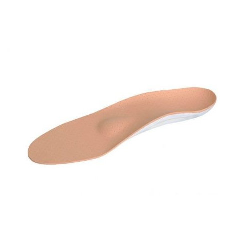 Szendvics szerkezetű betét merev. Rugalmas, perforált borítású lúdtalpbetét haránt- és hosszboltozattal, valamint öblösített sarokkiképzéssel. A rugalmas járófelület magas komfortérzetet biztosít és perforált kiképzése szellőzteti a lábat. A haránt-