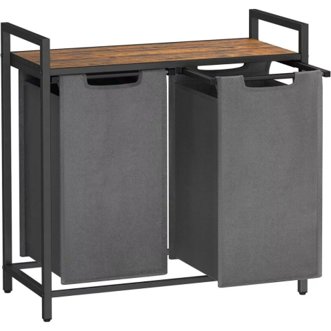 1 kép Szennyestartó, kihúzható és levehető ruhatartó zsákkal 2x46L, szürke
