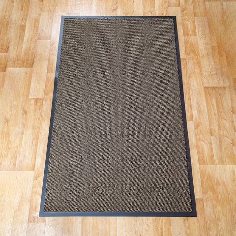 90x150 cm-es szennyfogó szőnyeg, barna színben, kiváló minőségű polipropilén járófelülettel, csúszásmentes pvc hátoldallal és szegéllyel.