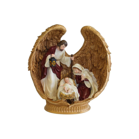 Szent Család angyalszárnyakkal - Karácsonyi dekoráció 30cm Ez a részletgazdag Szent Család szobor egy gyönyörű és egyedi kiegészítője lehet az idei karácsonyi dekorációnak. A finoman kidolgozott figurák és a fényűző angyalszárnyak varázslatos hangula...