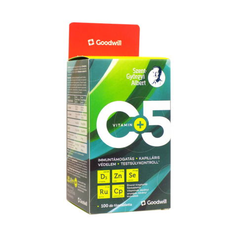 Szent-Györgyi Albert C+5 hosszan tartó hatású étrend-kiegészítő filmtabletta vitaminokkal, ásványi anyagokkal és növényi kivonatokkal.