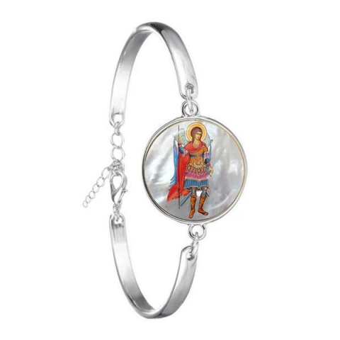 Állítható Szent Mihály arkangyal karkötő ezüst színben. Tökéletes választás a mindennapi védelemhez és spirituális támogatáshoz