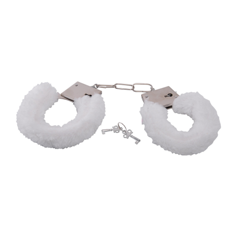 Szerelem bilincs–fehér plüss borítással.A fém nem a legerősebb fajta.Fémből készült,2 db kulccsal.