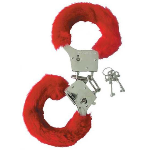 Szerelem bilincs–piros plüss borítással.A fém nem a legerősebb fajta.Fémből készült,2 db kulccsal.