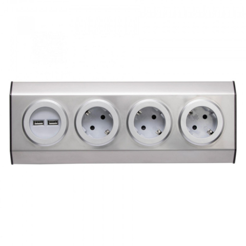 A KNV 03/USB Szerelhető konyhai elosztó praktikus és biztonságos megoldást nyújt konyhájában az elektromos eszközeinek tápellátásához. Kiváló minőségű rozsdamentes acélból készült, amely elegáns és modern megjelenést kölcsönöz a konyhájának. Ez a konyhai
