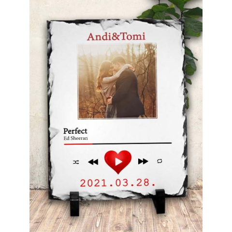 Szerelmes ajándék, közös dal kőlap. Valentin napi, évfordulós ajándék barátodnak, barátnődnek, házasoknak. Lepd meg férjed, feleséged akár karácsonyra is egy különleges kőlappal, ami egy képeteket ábrázolja egy zenelejátszóban ahol a közös zenétek megy. A