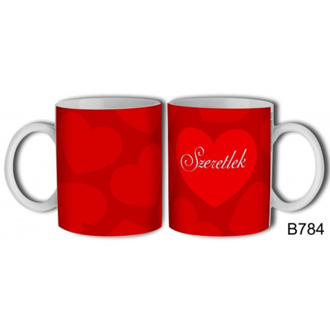 1 kép Szerelmes bögre, piros alapon piros szívek