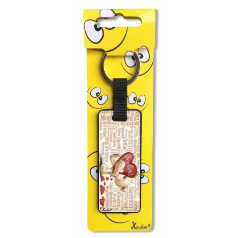Szerelmes kulcstartó, Szeretlek szavak, maci szívvel Műanyag 2,5 x 7,5 cm