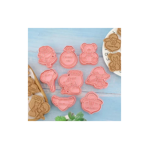 Anyaga: műanyag A kiszúrók mérete: magasságuk 6 cm. A kiszúró vastagsága: 2 cm 8 darabos különböző alakú, süteménykiszúró és sütemény nyomda, melynek segítségével igazán különleges, szerelmes témájú süteményeket tudsz készíteni. A süteménykiszúró és