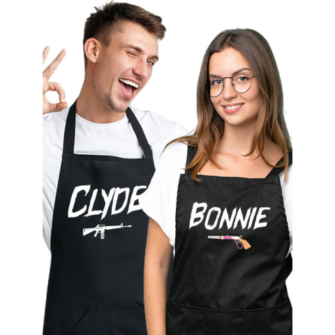 Szerelmes páros kötény, Bonnie és Clyde. Páros kötény Valentin napra, évfordulóra film rajongó pároknak. Egy igazi klasszikus páros kedvelőinek nincs is jobb ajándék egy ilyen köténynél, amit fehér vagy akár fekete színben is megrendelhetsz. A kötény anya
