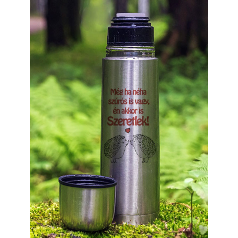 Szerelmes termosz, ha néha szúrós is vagy. Még ha néha szúrós is vagy én akkor is szeretlek, feliratos termosz cuki sünikkel valentin napra, születésnapra szerelmednek. Termoszaink rozsda mentes acél anyagból készültek, 500ml-es és 750ml-es változatban e