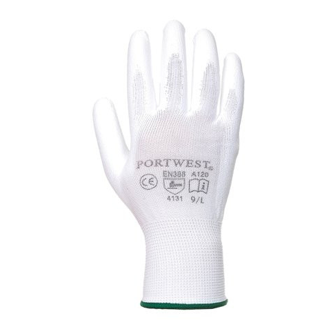 Szerelőkesztyű, tenyéren mártott, 9-es méret, fehér minőségi precíziós szerelőkesztyű finommechanikai munkákhoz tenyéren PU bevonattal kényelem és kiváló fogásbiztonság szín: fehér
